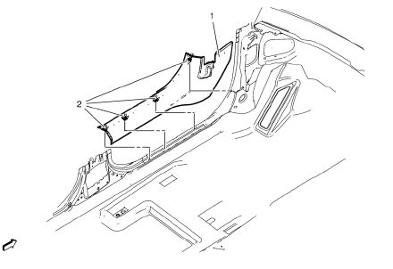 Remove the rear side door trim. Refer to Rear Side Door Trim Replacement.