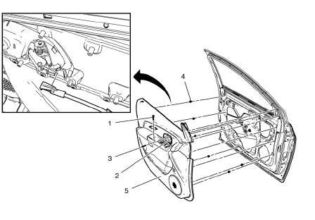 Remove the front side door trim. Refer to Front Side Door Trim Replacement.