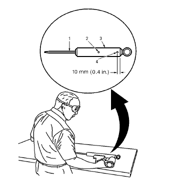 Warning: To prevent personal injury, wear safety glasses when centerpunching and drilling the shock absorber. Use care not to puncture the shock absorber tube with the centerpunch.