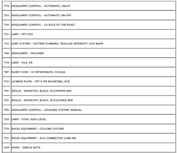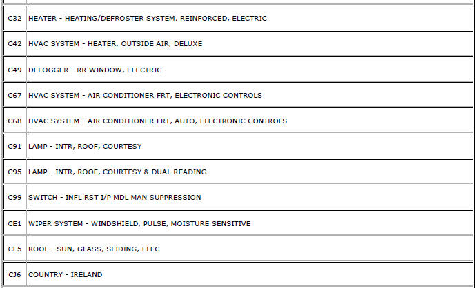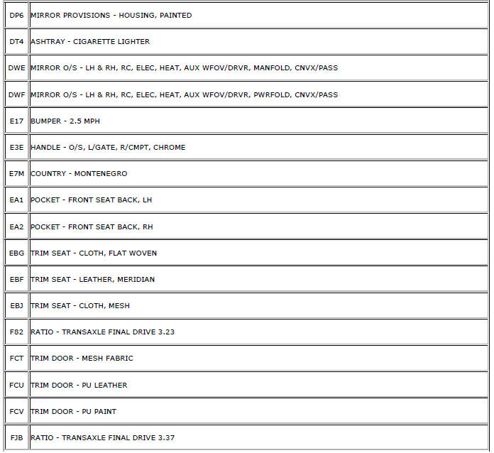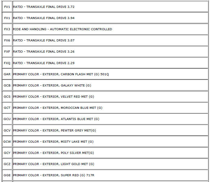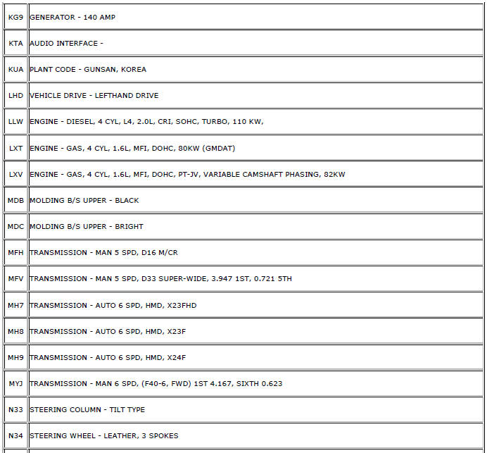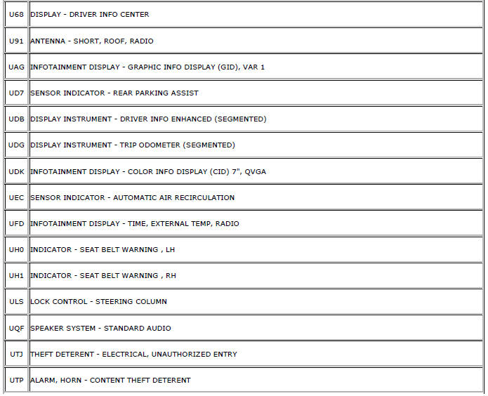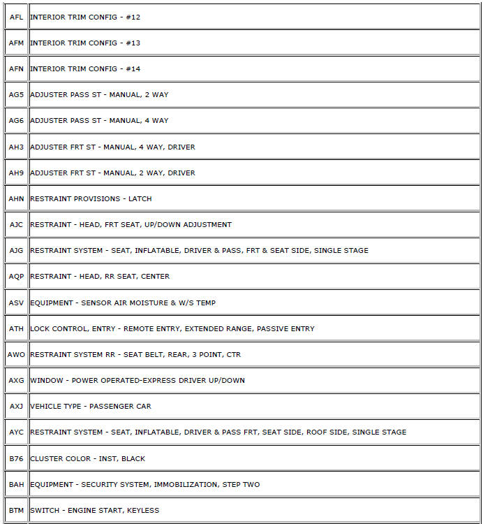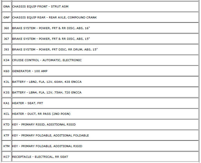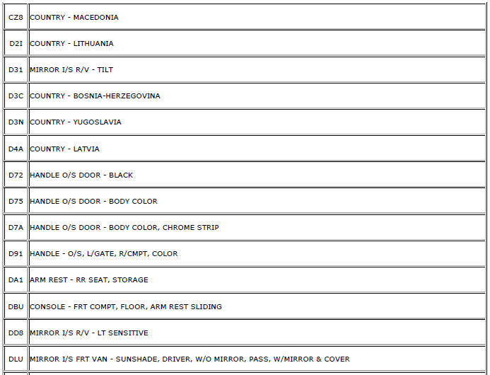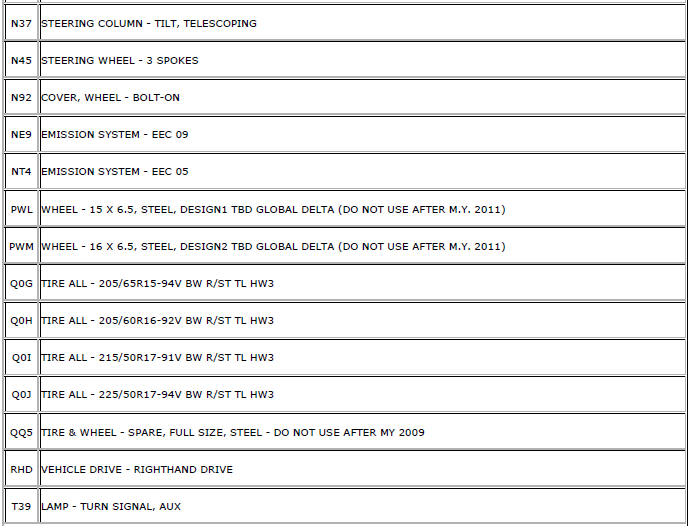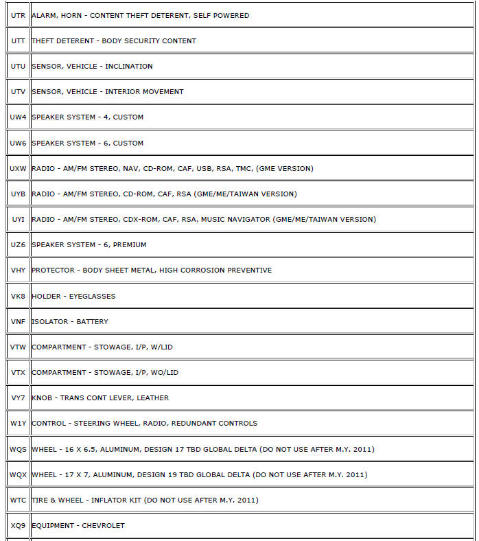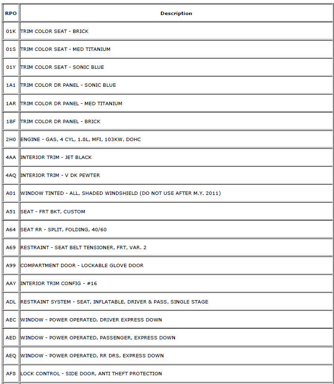 The following table provides the description of the Regular Production Option (RPO) codes that are available on the vehicle. The vehicle's RPO list is printed on the Service Parts Identification Label.